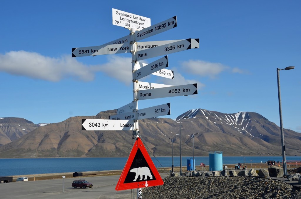 Co to w ogóle jest ten Svalbard? Wyspy w Arktyce, na północ od Norwegii i w cholerę na północ od Polski. Noc tutaj trwa prawie cztery miesiące bez przerwy, za oknem mamy przyjemne -20°C (odczuwlna to rześkie -41°C!), żeby nie było za łatwo na wyspach żyje też ponad 3000 niedźwiedzi polarnych, a żeby wyjść za miasto potrzebny jest karabin i odrobina masochizmu. Wspominałem już że na Biegun Północny bliżej niż do Oslo?